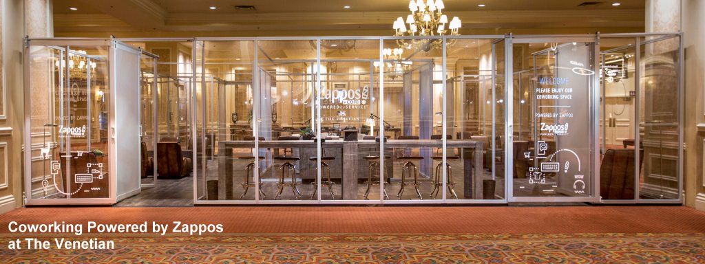 The Venetian®, The Palazzo®, and Sands® Expo, in partnership with Zappos, are now offering guests access to a first-of-its-kind coworking space located on level two of The Venetian | The Palazzo Congress Center. The lounge will be open seven days a week from 9 a.m. to 5 p.m. with hours subject to change based on the needs and utilization of the Congress Center. Zappos team members are staffing the lounge and sharing the Zappos service philosophy of “delivering happiness” with every “collision” they make with a guest.