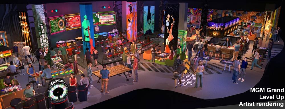 LEVEL UP, a new “place to play” concept lounge, opened at MGM Grand on Dec. 29 presenting a new era in interactive, skill-based fun. The tech savvy, adult playground is located between Hakkasan Nightclub and the MGM Grand Race and Sports Book. It features pay-to-play offerings in a social atmosphere.