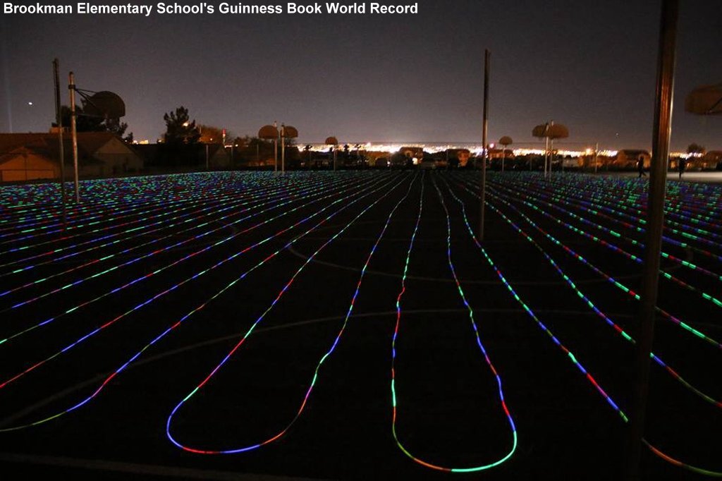 Brookman Elementary School's Guinness World Records attempt was a success with 20,703 glow sticks illuminating the school grounds on Jan. 15 with a line measuring 3.92 miles pending final approval. The glow sticks represented each book the students read and were tested on, with an 80 percent comprehension or better from September 2015 to January 2016. The current world record holder is a primary school in Australia with 9,800 glow sticks.