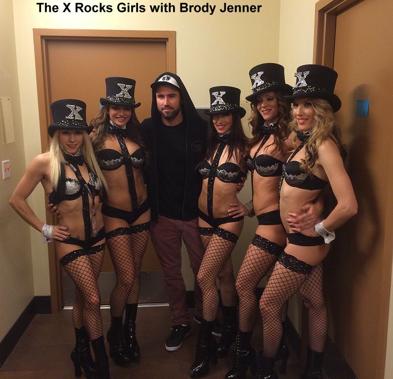 The sexy X Rocks girls from the Rio made a recent special performance at the Hard Rock during the annual AVN Awards and afterwards were was joined backstage by television personality Brody Jenner.