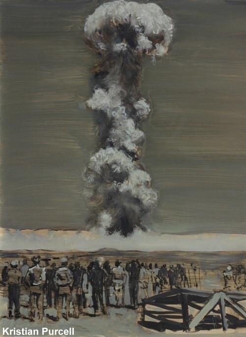 Art by Kristian Purcell is on display in the lobby at the National Atomic Testing Museum through March 3. Purcell was born in Bedford England. His work involves exploring both the historical and the personal - through painting - by examining relationships, and by building with photographic material, using personal photographic collections, or archived and historical sources. Purcell is currently working on a graphic history of the Nevada Test Site with Andy Kirk professor of history at UNLV.