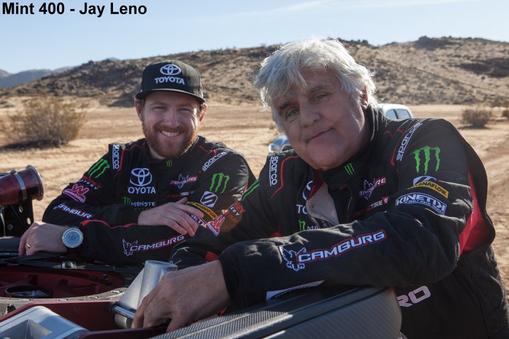 The Mint 400 has a rich history of attracting celebrity racers. Former “Tonight Show” host Leno joins the esteemed ranks of James Garner, Steve McQueen, Patrick Dempsey, Chuck Norris, Demarcus Ware, and Sal Masekela just to name a few. Leno's adventures racing the Mint 400 will be featured on his TV show “Jay Leno's Garage” exposing off-road racing to millions of automotive fans.
