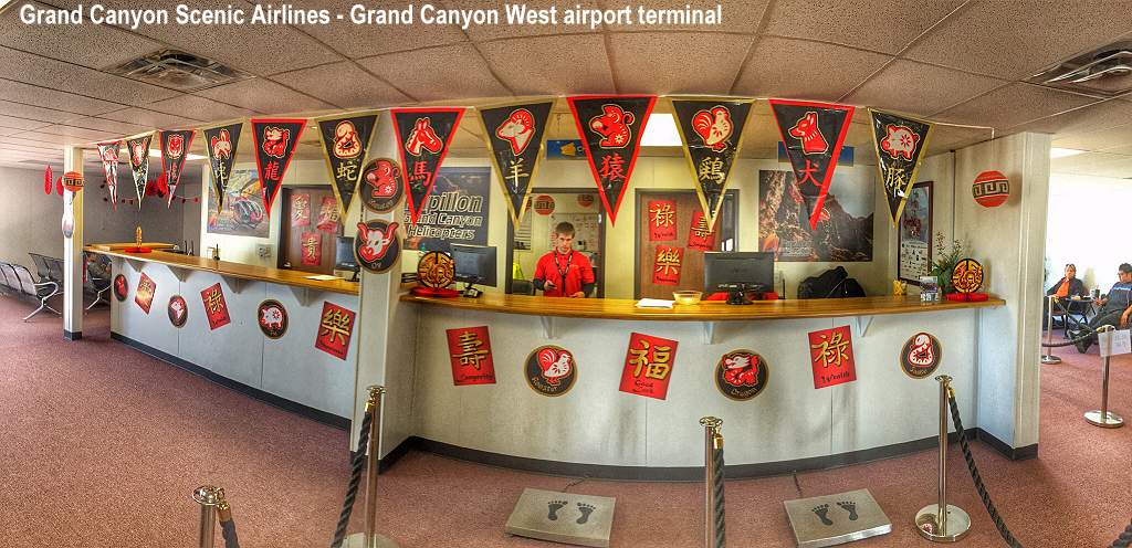 The Grand Canyon Scenic Airlines airport terminal at Grand Canyon West is filled with festive decorations paying homage to the Year of the Monkey through February.