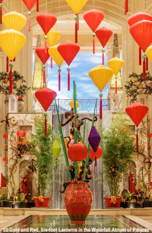 The “Year of the Monkey” is visually on display inside The Waterfall Atrium and Gardens of The Palazzo through Feb. 29. Some of the art installation features include: 78 handcrafted monkeys around property; a five-foot tall, 300-pound Monkey King draped in Swarovski crystals with a chest plate made with more than 8,000 hand-sewn gold coins; a 38-foot-tall wishing tree; 88 gold and red six-foot suspended lanterns; plus more than 1,000 blooming flowers and 1,200 plants.