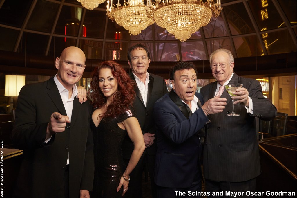 It was a party for sure celebrating the Scintas opening in the showroom at the Plaza. A VIP/media reception and preview viewing reinforced the powerhouse group's many musical talents wrapped in comedy. Mayors Oscar Goodman and Carolyn Goodman were in attendance at the cocktail reception in Oscar's namesake hotel restaurant and a proclamation was presented.