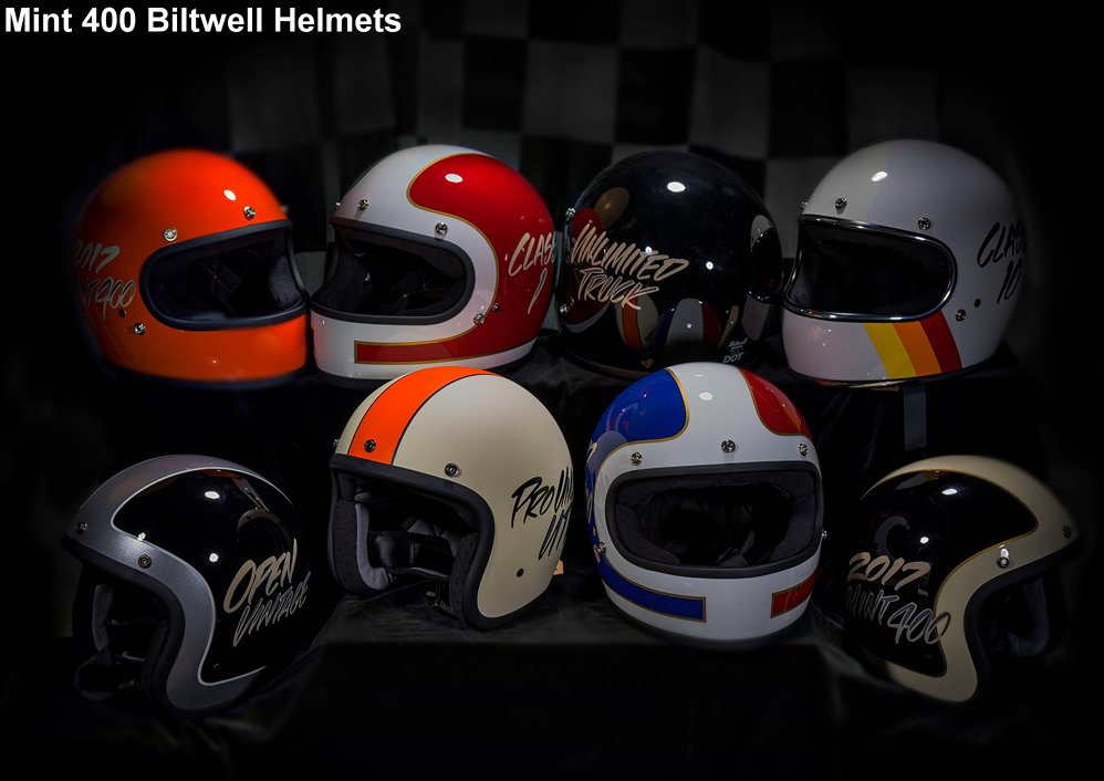 Biltwell Helmets is a product sponsor. The company is creating custom helmet trophies for all 29 classes competing at the 2017 Polaris RZR Mint 400 presented by BFGoodrich Tires. Last year, Biltwell created the custom helmet trophies hand-painted by legendary painter and pin striper Pete “Hot Dog” Finlan at Hot Dog Kustoms for first place, first loser and second loser for both vintage classes. This year, every class winner will receive one of these trophies.