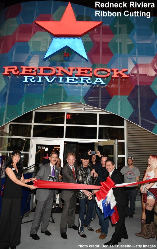 Last week the new country music lifestyle bar Redneck Riviera at Grand Bazaar Shops had a grand opening celebration hosted by the entertainment venue's founder John Rich, who is half of the country duo Big & Rich. There was a celebratory ribbon-cutting, celebrity red carpet and music with some singing celebs performing.