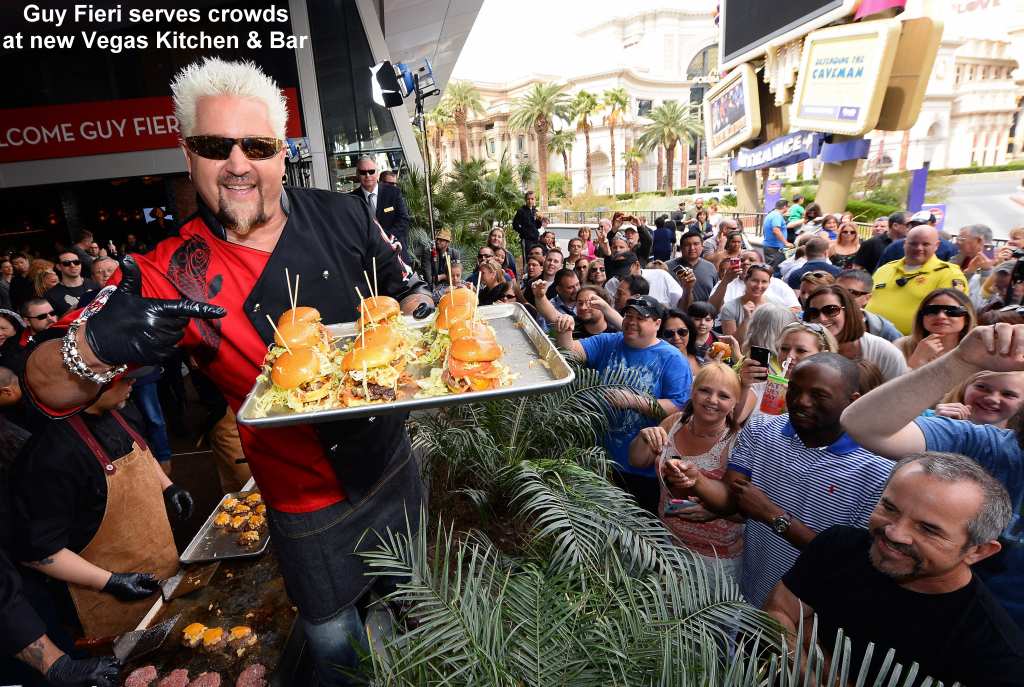 Guy Fieri's Vegas Kitchen & Bar opened April 17 at The Quad and adjacent to the Carnaval Court with TV's “Diners, Drive-Ins and Dives” Chef Fieri at the helm welcoming guests. His first Las Vegas restaurant seats 200 and features casual foods for all-day dining from 10 a.m. to 2 a.m. The extensive drink menu has 16 craft beers and a frozen tap system shot bar that dispenses eight different shots straight out of iced dispensers.