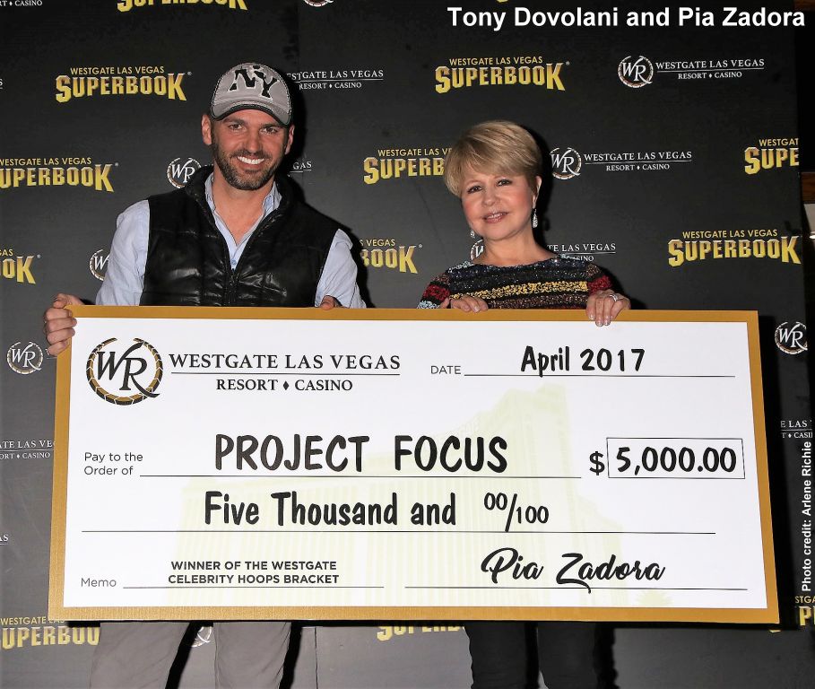 The 2017 Hoops Central Celebrity Bracket Challenge winner at the Westgate was Golden Globe-winning actress and singer Pia Zadora. She was presented a $5,000 check for a charity of her choice, which is UNLV's Project F.O.C.U.S. to help college students with intellectual disability and autism. Zadora beat 16 other celebrities in the inaugural bracket challenge and was presented the check by runner up, professional dancer Tony Dovolani of “Dancing with the Stars.”