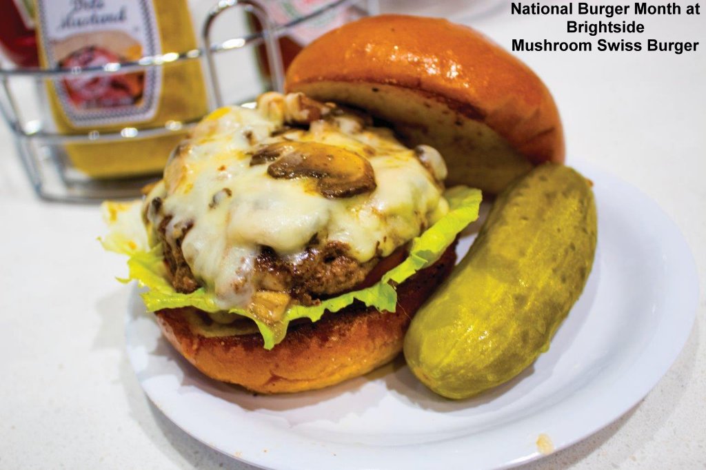 To celebrate National Burger Day on May 28, Brightside Breakfast & Burgers at the Plaza is offering 20 percent off any burger on its menu during the month of May when the customer says “National Burger Day.”