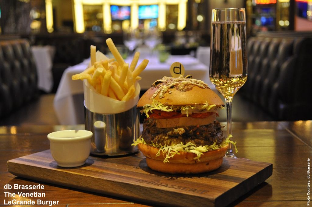 Chef-owner Daniel Boulud and Chef de Cuisine David Middleton of db Brasserie at The Venetian have created a limited-edition burger in honor of the restaurant's first year anniversary. The Le Grande Burger with a glass of Veuve Clicquot Yellow Label Brut is available for $50 in May.
