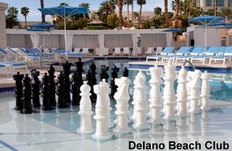 Delano Beach Club at Delano Las Vegas is now open introducing a new pool experience with a South Beach-inspired paradise including an a whimsical oversized chess board perched atop the pool's refreshing wet deck.