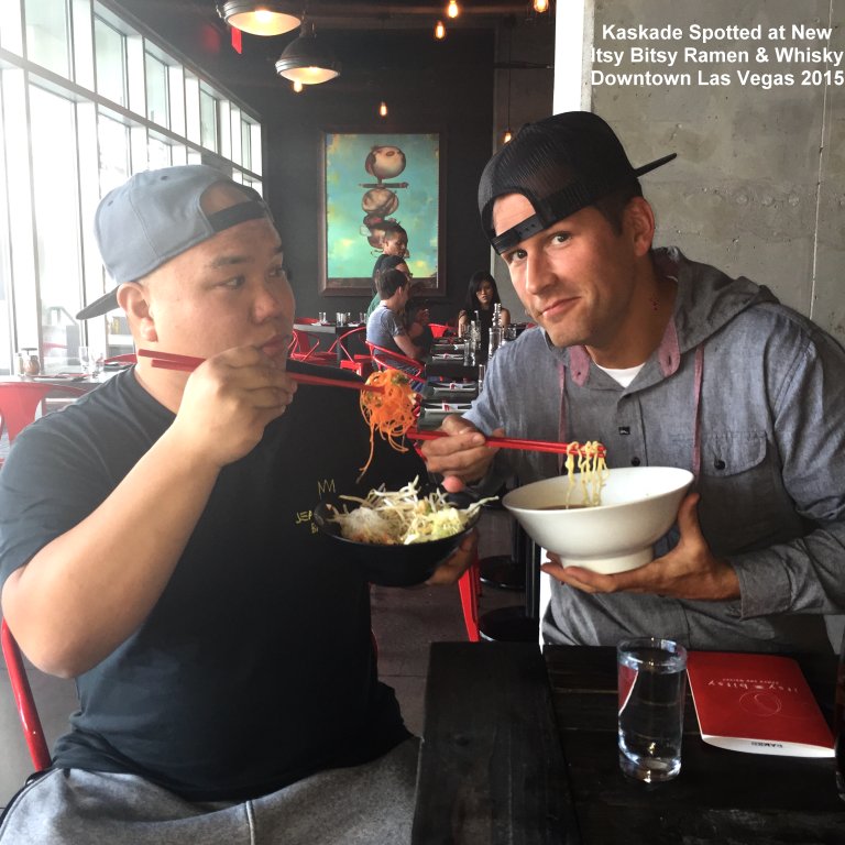 DJ and record producer Kaskade was spotted dining at the newly opened Itsy Bitsy: Ramen and Whisky downtown with the restaurant's managing partner, DJ Five, a resident DJ to several of Las Vegas' biggest nightclubs.
