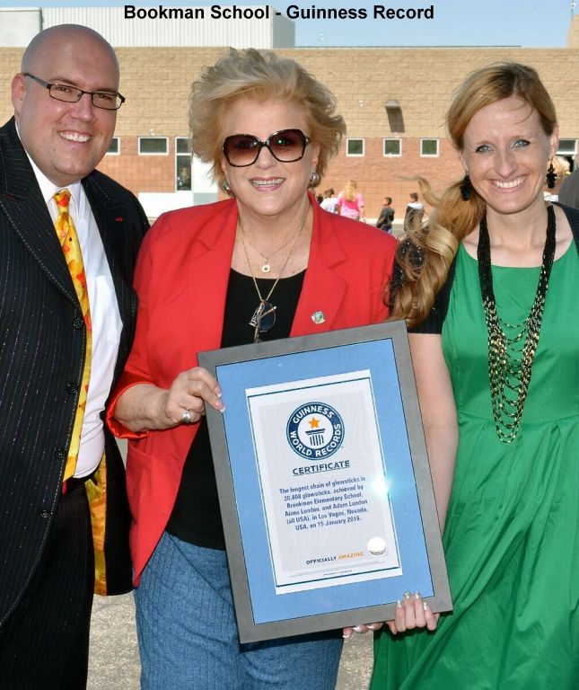 Wrote about this feat a few months ago but now it's official, Guinness World Records honored Brookman Elementary School, comedy magician Adam London starring at the D downtown, and 4th-grade teacher Alana London with the title “Longest Chain of Glow Sticks.” The number of glow sticks recorded last Jan. 15 was 20,808, and the line measured 3.92 miles. Glow sticks represented books read in the school's Reading Makes Us Bright” program.