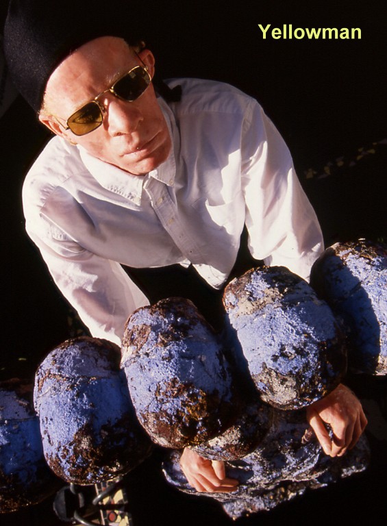 After winning a talent contest at Tastee Patties in Kingston, Yellowman went on to excite reggae crowds all over Jamaica and the rest of the world with his boastful and sometimes bodacious lyrics. He also began to work with the Ace Sound System in St. Thomas, drawing big crowds at his dancehall performances. Yellowman recorded one album with CBS Records before he was diagnosed with jaw cancer and was given six months to live in 1986. After surgery and an extended leave of absence from the record industry, Yellowman began his comeback with the song “Blueberry Hill,” and his career was re-launched. “Yellow Like Cheese,” his first album for RAS, was the beginning of what would be a long and fruitful relationship with RAS and Yellowman.