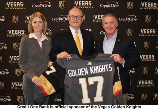 Credit One Bank, a national company headquartered in Las Vegas and one of the largest and fastest growing issuers of credit cards in the United States, has a multi-year integrated marketing partnership with the city's first major league National Hockey League franchise, the Vegas Golden Knights. Credit One Bank is the team's official credit card sponsor and will be actively involved with the Golden Knights Foundation.