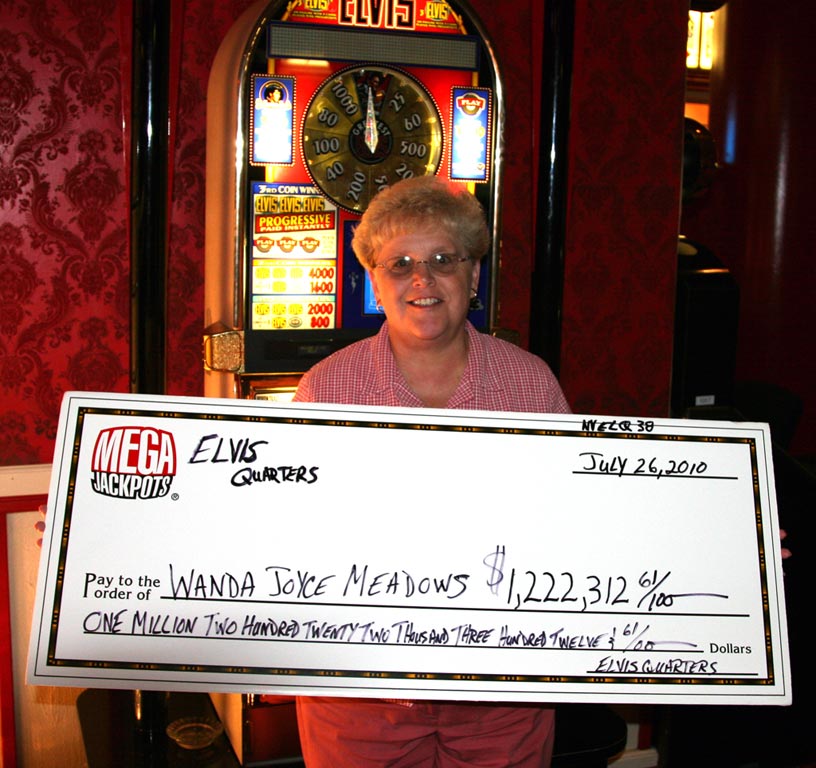 Hopewell, Va., resident Wanda Meadows had just won $2,100 playing a Keno machine at the Colorado Belle when she decided it was time to play the Elvis progressive machine. Meadows an Elvis fan put in $20 and proceeded to play. She won $1,222,312.58 on the IGT progressive link machine, which is the only one in Laughlin.