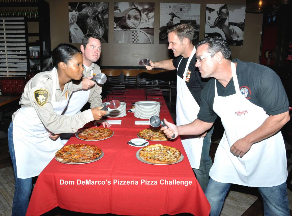 October is National Pizza Month and Dom DeMarco's Pizzeria & Bar is hosting a benefit Pizza Challenge with local firefighters and police. The Firefighters of Southern Nevada Burn Foundation and Friends of Las Vegas Metro Police Foundation have each created a signature pizza that will be featured on the Dom DeMarco's menu throughout the entire month. A portion of sales will be donated to each organization. At the end of the month, the organization with the highest pizza sales will receive an additional 10 percent donation. Firefighters created The Parmesan Red Hot pizza and police designed the Five-0 Meatza Pizza.