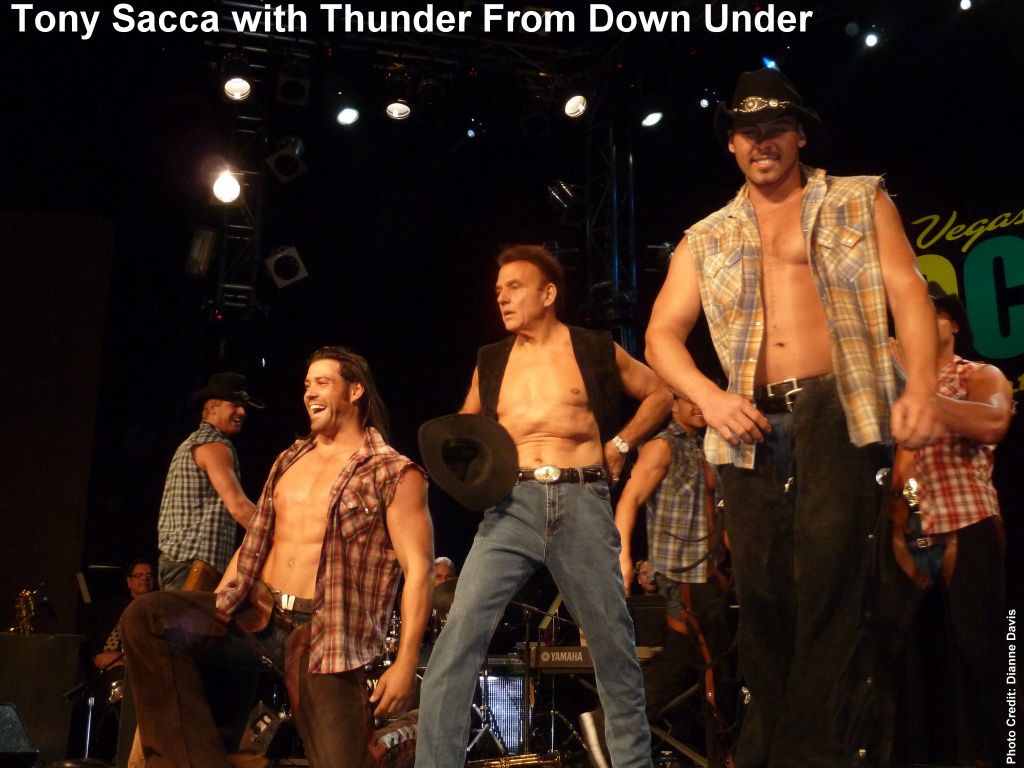 Entertainer Tony Sacca recently celebrated his 50-year anniversary in showbiz with a special edition of “Las Vegas Rocks Variety Show” filmed live at The Railhead at Boulder Station. The show airs the following Saturday after taping. For the anniversary show, Sacca was a surprise member of the sexy male revue “Thunder From Down Under.” The hour-long “Las Vegas Rocks Variety Show” tapes before a live audience and is free to watch every Friday at 2 p.m.