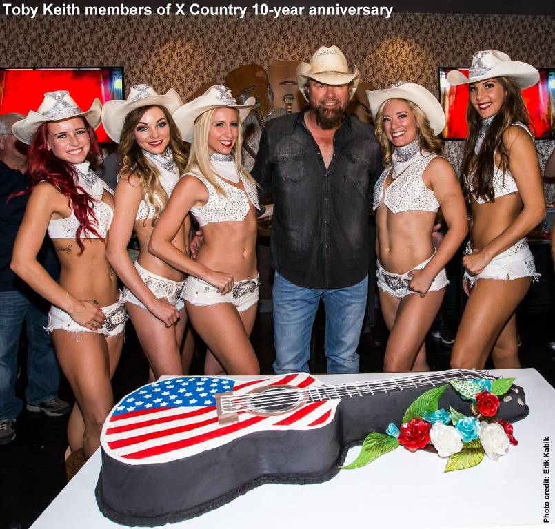 The newly renovated Toby Keith's I Love This Bar & Grill at Harrah's recently celebrated its 10-year anniversary with a surprise appearance from its namesake founder Toby Keith, the presentation of a large American Flag guitar cake, and the debut of the “Toby Keith's Anniversary Burger” made with a Po'Boy surf and turf through Oct. 31.