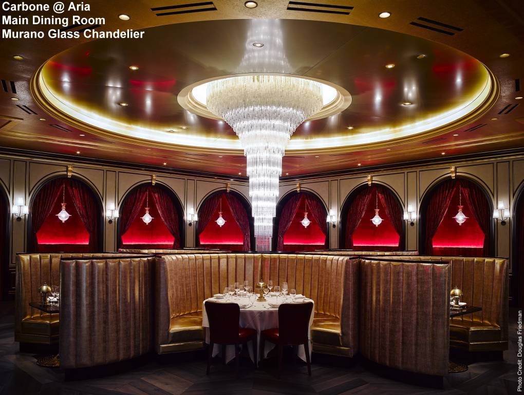 Mario Carbone, Rich Torrisi and Jeff Zalaznick introduce their celebrated concept with memorable Captain tableside service. Carbone enlisted San Francisco-based star designer Ken Fulk to create an atmosphere with a theatrical edge and Italian vibe. The space has been transformed into a series of rooms. The Blue Room features vaulted ceilings and walls composed of tiles from New York subway stations. The Red Room is the main dining room and inspired by the Milan Opera. It exudes glamour with its stunning floor-to-ceiling Murano Glass Crystal Chandelier that was originally commissioned for a Ferrari showroom in the 1960s. Adding an element of sophistication, Carbone in Las Vegas is filled with artwork by renowned artists.