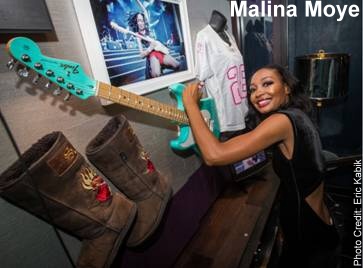 Malina Moye, one of the world's top female guitarists, was presented with a memorabilia case at Hard Rock this month. The case features the guitar she played during the 2010 Cowboys/Vikings game where she was the first African-American female to perform the National Anthem on a guitar at a major sporting event. Also in the case are the jersey and boots she wore during the performance and a video playing of the performance.