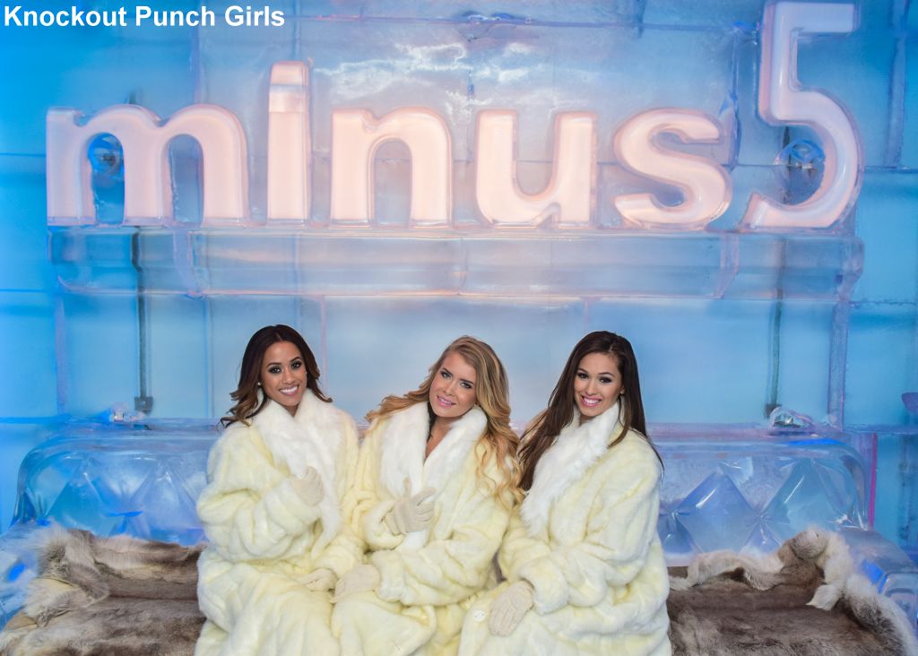 Minus5 Ice Bar continued their renowned celebrity cocktail program by celebrating The Top Rank Knockout Girls with their new signature cocktail the “Knockout Punch.” The stunning and lively Jen Mateo, Rachel McDonough and Candice Wurster took a break, donned the signature Minus5 fur coats and hats, and posed for photos.