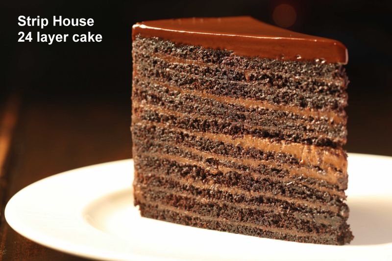 Planet Hollywood Strip House inside Planet Hollywood is famous for its 24 Layer Chocolate Cake, which was dubbed “The Best Thing I Ever Ate” by Food Network's Michael Psilakis. The cake, which is 8” round and 12” high, features 24 layers of alternating luscious chocolate cake and smooth chocolate filling, topped with a layer of French semisweet chocolate ganache. The moist cake is available for shipping anywhere in the United States.